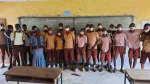 Schüler mit Masken