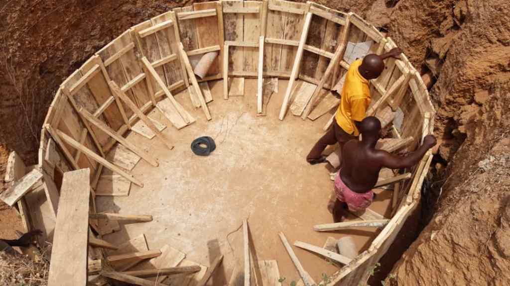 Mit einer zweiten Förderung durch die Schmitz-Stiftung begann im August 2019 der Bau der Biogasanlage auf dem Gelände der Secondary School. Dort leben 300 junge Menschen mit Beeinträchtigungen. Neben den gehörlosen sind auch blinde und körperbehinderte SchülerInnen dabei, die hier das anerkannte „Westafrican Senior School Certificate“ erreichen können. Die Bauarbeiten mit dem manuellen Ausschachten der Grube bei dem trockenen, harten Boden verlangte von den Arbeitern sehr viel Kraft. Später traten ungewöhnlich frühe und heftige Stürme mit Regenfällen auf, so dass Regenwasser und Schlangen immer wieder aus der Grube gepumpt werden mussten.
